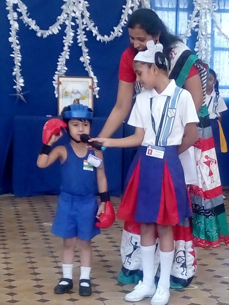 The celebration commenced with the welcome & introduction of the chief guest by the Principal Mrs. Rabadi. This was followed by the lighting of the diya to evoke god’s blessings. After this, the kindergarten & Std. IV gave a mesmerising performance on the theme ‘ National Integration’ & left all present spellbound.