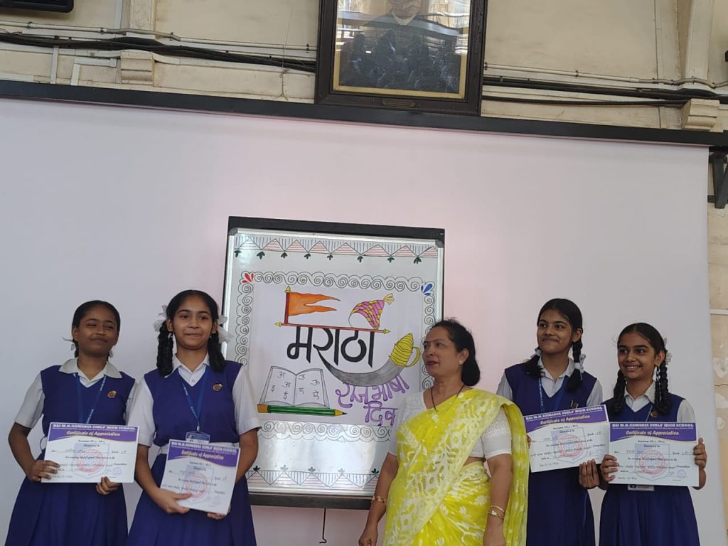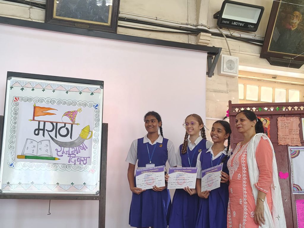 Due to the ongoing SSC Examination schedule, Marathi Diwas was observed in a short and simple manner on Friday, February 27, 2026. The celebration began with a welcome song, followed by brief information highlighting the importance and richness of the Marathi language. An audio-visual presentation was also shown to enhance the students’ understanding.